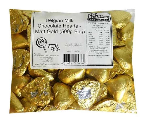 So why not indulge in the rich and decadent taste of Belgian milk chocolate today? Place your order from The Professors Online Lolly Shop and experience the luxurious taste of these matte gold chocolate hearts for yourself!