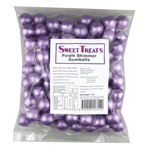 And lets talk about convenience. Each 1kg bag is packed with plenty of gumballs to keep your customers coming back for more. Plus, with their long shelf life, you can stock up in advance and have them ready to go whenever you need them. No more last-minute runs to the store – just grab a bag and let the shimmering purple magic unfold.