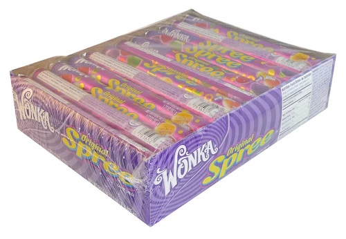 Wonka Original Spree by Willy Wonka, now available as 36 x 50.1g rolls in a display unit from Australias widest range of sweets and treats for wholesale and direct retail in bulk. Buy these, and more lollies and sweets, at The Professors Online Lolly Shop
